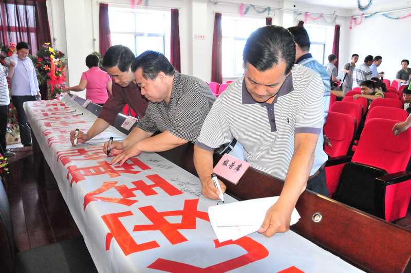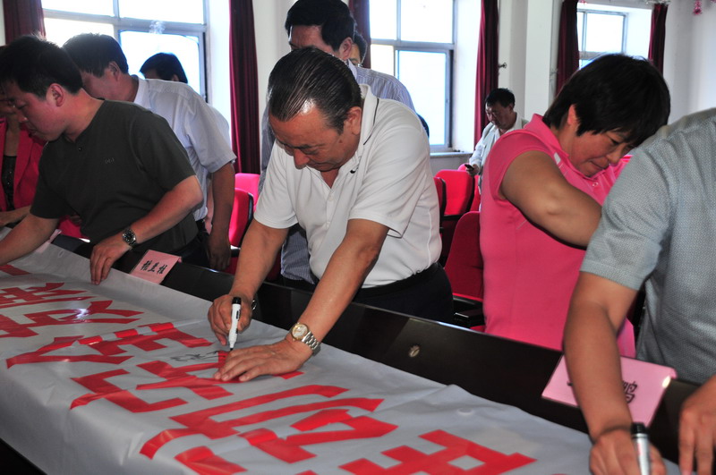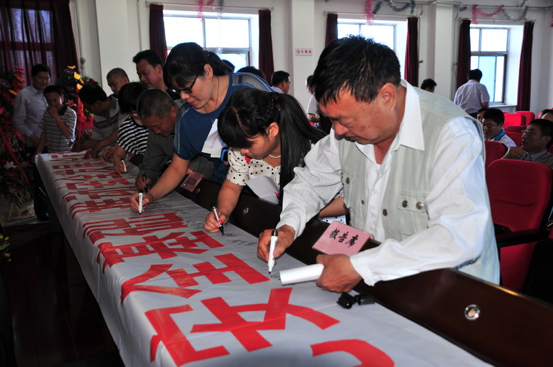参会人员在“强化安全基础,推动安全发展,全面推行标准化”条幅上签字