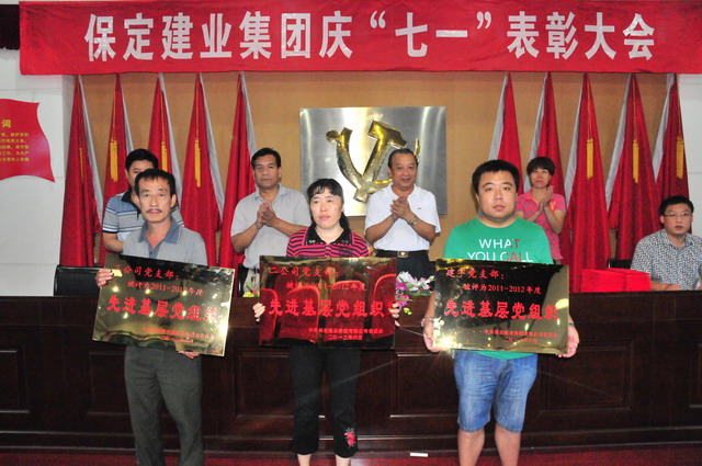 2012年7月6日在我集团会议室隆重招开“七一表彰大会”!集团公司党委希望受表彰的先进基层党组织、优秀共产党员、优秀党务工作者,发扬成绩,珍惜荣誉,再接再厉,为企业的发展做出新的贡献。同时号召全体党员干部以“先进”为榜样,要“学先进、争先进、当先进”,要紧密团结在集团公司党委周围,认真践行科学发展观,在自己的工作岗位上发挥先锋模范作用,为党旗增光添彩,为企业发展建功立业。